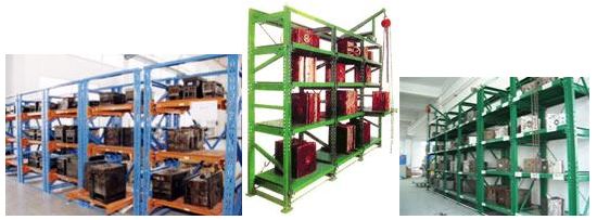 模具貨架又稱為抽屜式貨架或者抽拉貨架:主要用于存放各種模具等物品,頂部可配置手拉葫蘆移動車,便于貨物的存取,以方便模具的起吊。抽屜底部設有滑輪軌道,抽屜板承載后仍能自如的移動。根據層載能力要求分為輕型模具貨架和模具貨架:輕量型模具貨架承載<800KG/層,重量型模具貨架承載大于等于800KG/層。整體采用拼裝結構,運輸方便,組裝簡單、快捷。擁有完善安全保護裝置。